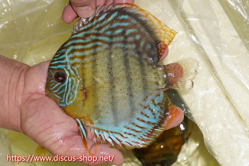 グリーンディスカスの中でも最もバリエーションが豊富でラージスポットタイプ、スポットラインタイプをはじめ、ロイヤルラインタイプなどの極上個体。またベースカラーの黄色、ホリゾンタルラインの青み、スポットの赤と最もカラフルな種となります。仕上がれば改良品種顔負けのど派手なパターンを持つ魅力的な産地の個体となります。