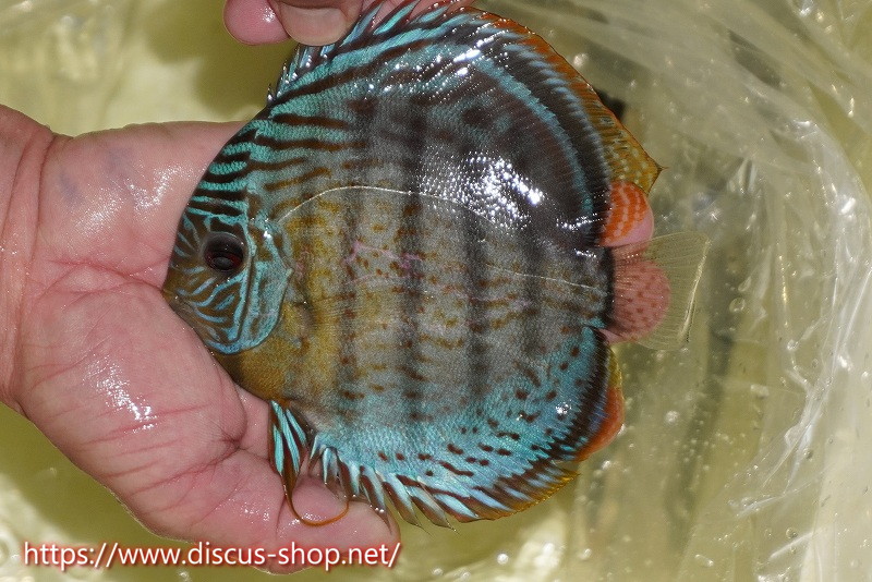 グリーンディスカスの中でも最もバリエーションが豊富でラージスポットタイプ、スポットラインタイプをはじめ、ロイヤルラインタイプなどの極上個体。またベースカラーの黄色、ホリゾンタルラインの青み、スポットの赤と最もカラフルな種となります。仕上がれば改良品種顔負けのど派手なパターンを持つ魅力的な産地の個体となります。