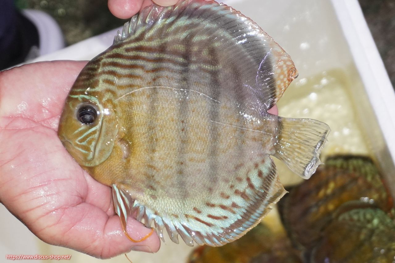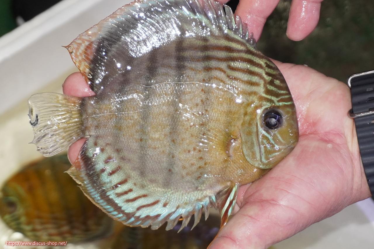 グリーンディスカスの中でも最もバリエーションが豊富でラージスポットタイプ、スポットラインタイプをはじめ、ロイヤルラインタイプなどの極上個体。またベースカラーの黄色、ホリゾンタルラインの青み、スポットの赤と最もカラフルな種となります。仕上がれば改良品種顔負けのど派手なパターンを持つ魅力的な産地の個体となります。