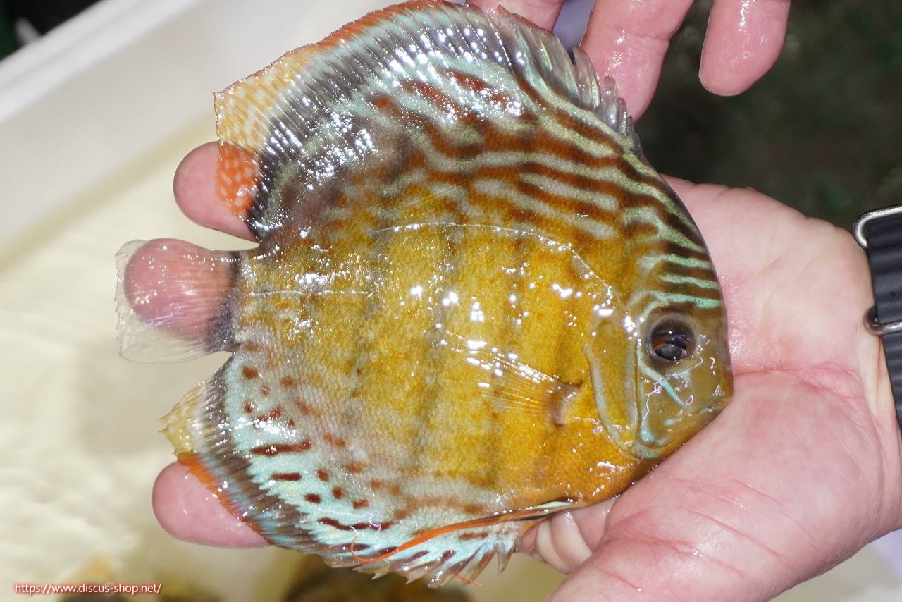 グリーンディスカスの中でも最もバリエーションが豊富でラージスポットタイプ、スポットラインタイプをはじめ、ロイヤルラインタイプなどの極上個体。またベースカラーの黄色、ホリゾンタルラインの青み、スポットの赤と最もカラフルな種となります。仕上がれば改良品種顔負けのど派手なパターンを持つ魅力的な産地の個体となります。