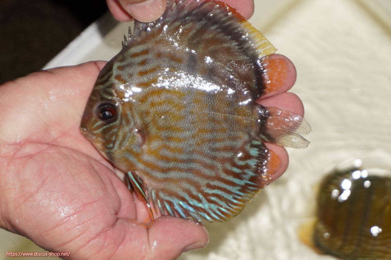 イエローベースが美しいソリッド、ソリッドセンターバー、ロイヤルブルーが混生するウラリアチャンネルに絡む有名産地。 きめ細かな鱗からの上品な発色、ロイヤル個体の明瞭なラインパターン、千差万別の個体差はワイルドディスカスの魅力を存分に持ち合わせた個体といえます。