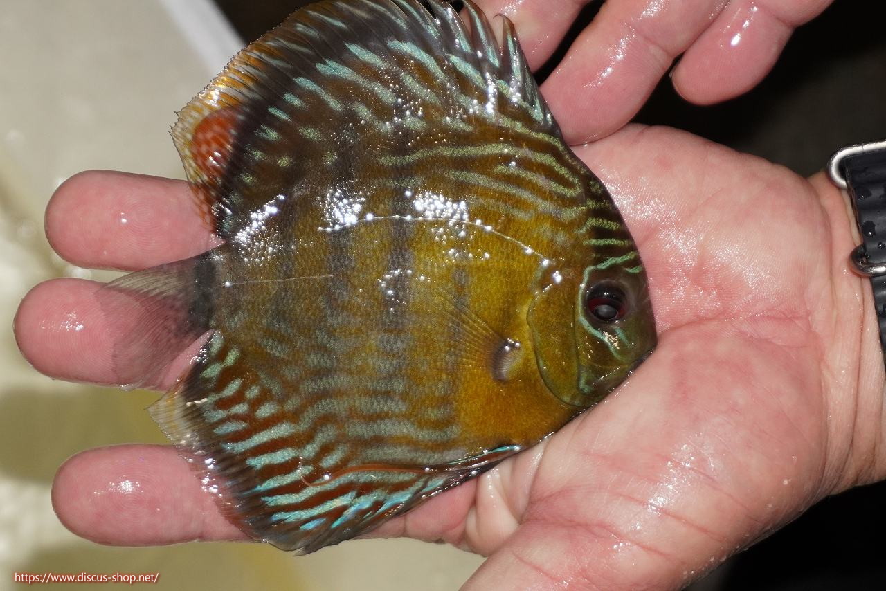 イエローベースが美しいソリッド、ソリッドセンターバー、ロイヤルブルーが混生するウラリアチャンネルに絡む有名産地。 きめ細かな鱗からの上品な発色、ロイヤル個体の明瞭なラインパターン、千差万別の個体差はワイルドディスカスの魅力を存分に持ち合わせた個体といえます。