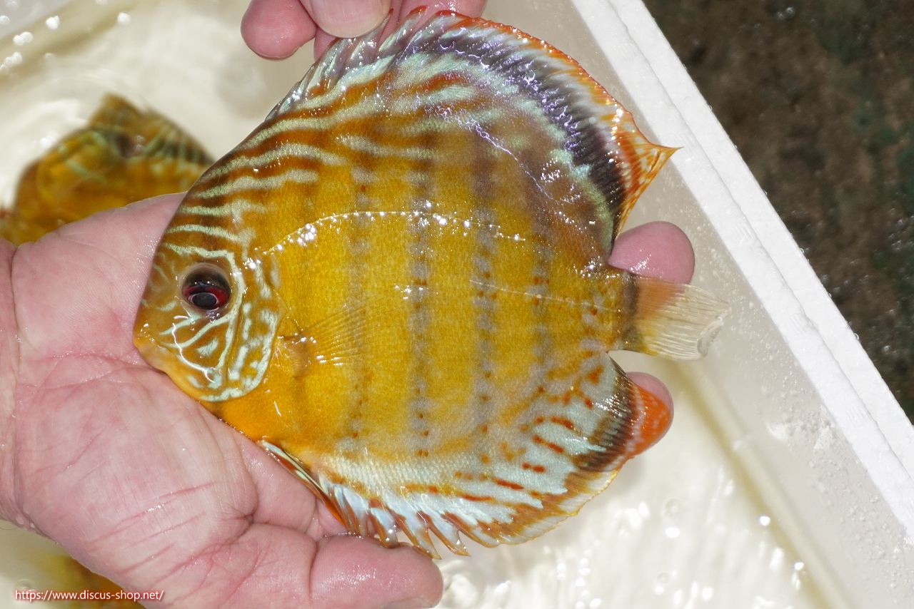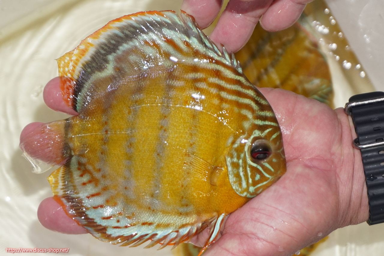 グリーンディスカスの中でも最もバリエーションが豊富でラージスポットタイプ、スポットラインタイプをはじめ、ロイヤルラインタイプなどの極上個体。またベースカラーの黄色、ホリゾンタルラインの青み、スポットの赤と最もカラフルな種となります。仕上がれば改良品種顔負けのど派手なパターンを持つ魅力的な産地の個体となります。