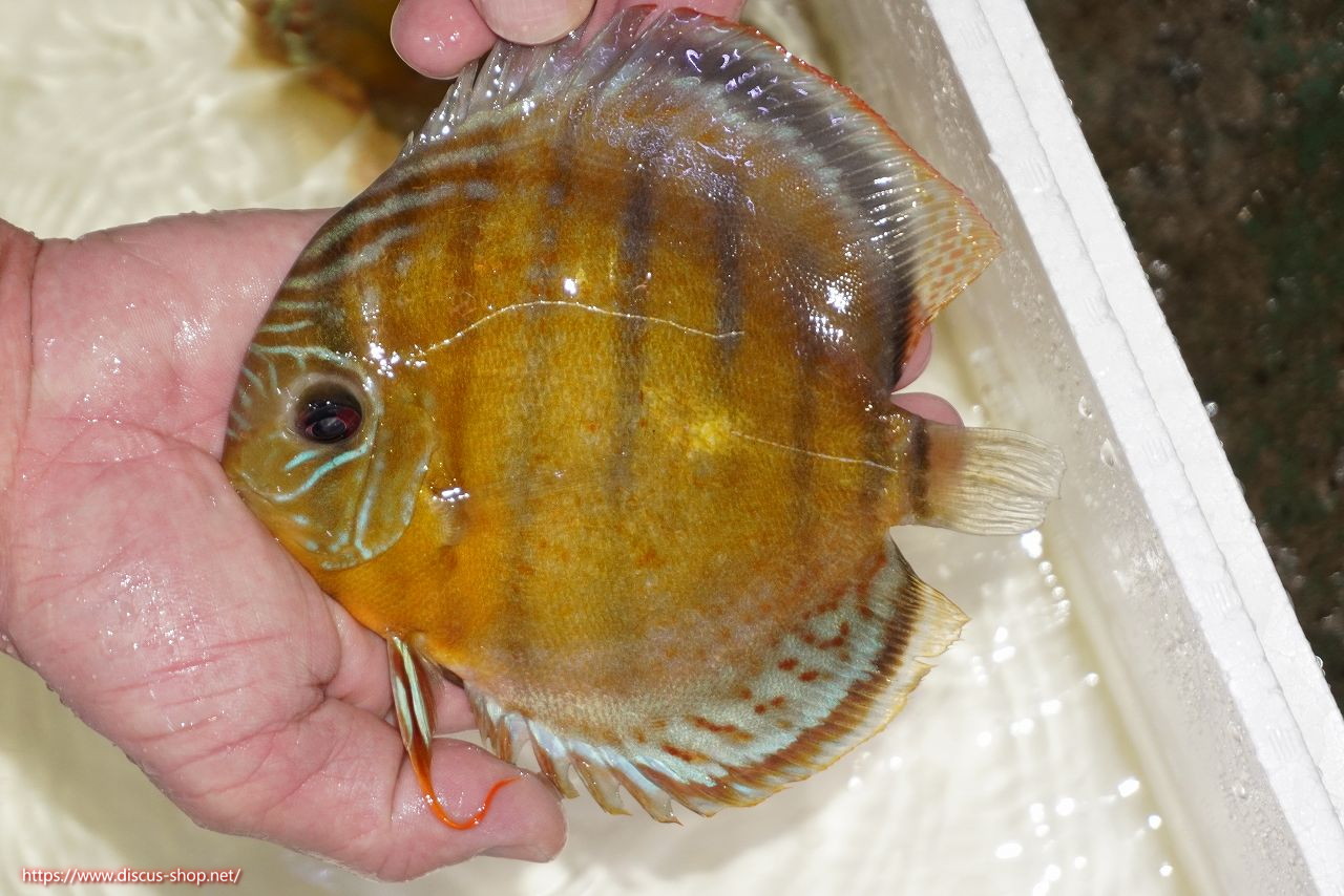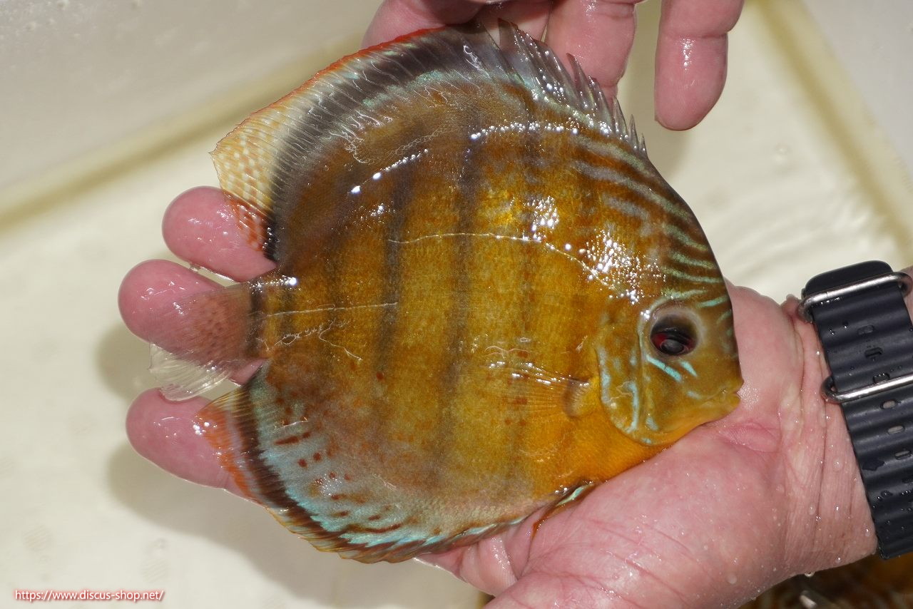 グリーンディスカスの中でも最もバリエーションが豊富でラージスポットタイプ、スポットラインタイプをはじめ、ロイヤルラインタイプなどの極上個体。またベースカラーの黄色、ホリゾンタルラインの青み、スポットの赤と最もカラフルな種となります。仕上がれば改良品種顔負けのど派手なパターンを持つ魅力的な産地の個体となります。