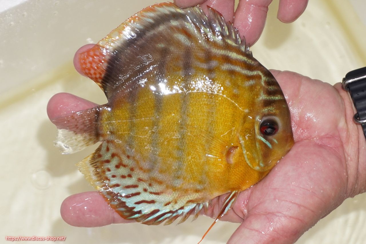 グリーンディスカスの中でも最もバリエーションが豊富でラージスポットタイプ、スポットラインタイプをはじめ、ロイヤルラインタイプなどの極上個体。またベースカラーの黄色、ホリゾンタルラインの青み、スポットの赤と最もカラフルな種となります。仕上がれば改良品種顔負けのど派手なパターンを持つ魅力的な産地の個体となります。