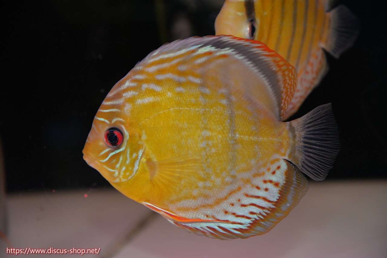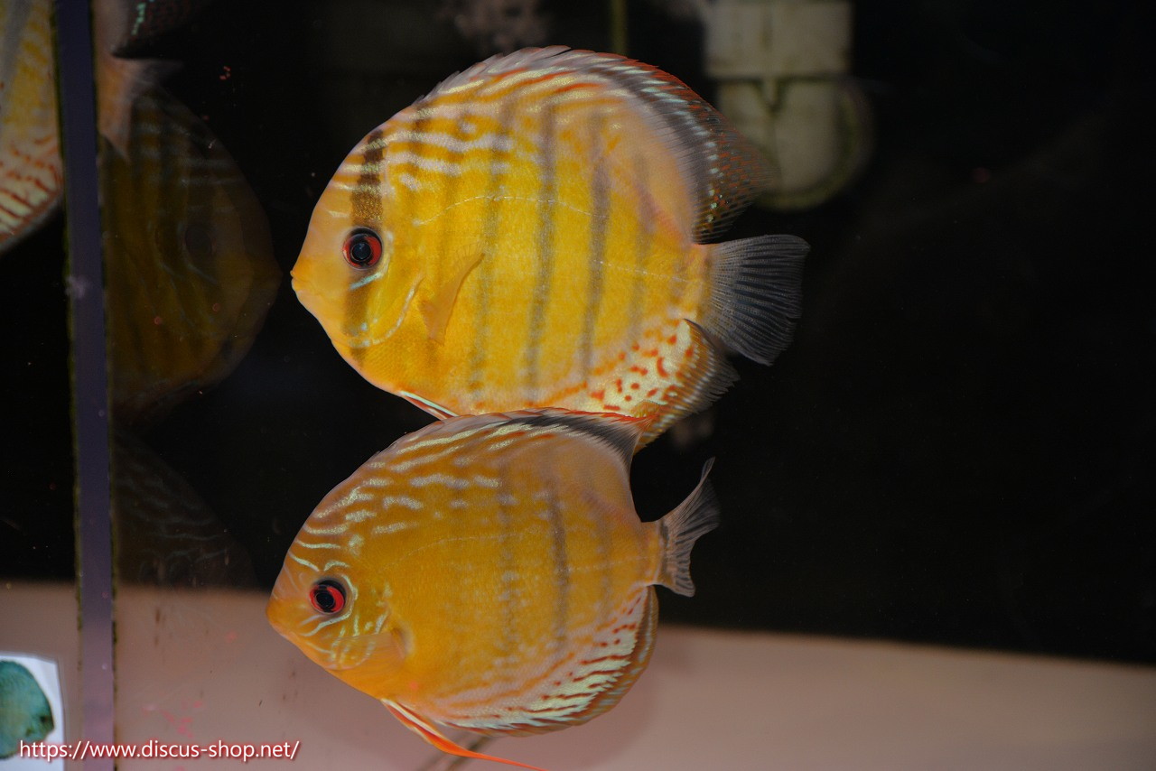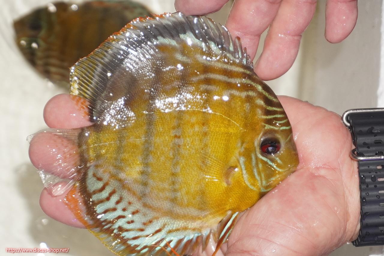 グリーンディスカスの中でも最もバリエーションが豊富でラージスポットタイプ、スポットラインタイプをはじめ、ロイヤルラインタイプなどの極上個体。またベースカラーの黄色、ホリゾンタルラインの青み、スポットの赤と最もカラフルな種となります。仕上がれば改良品種顔負けのど派手なパターンを持つ魅力的な産地の個体となります。